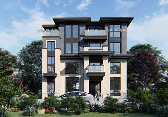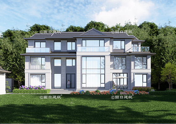 占地面積 142.4㎡ 土建造價 60.0萬 帶底商三層美式別墅